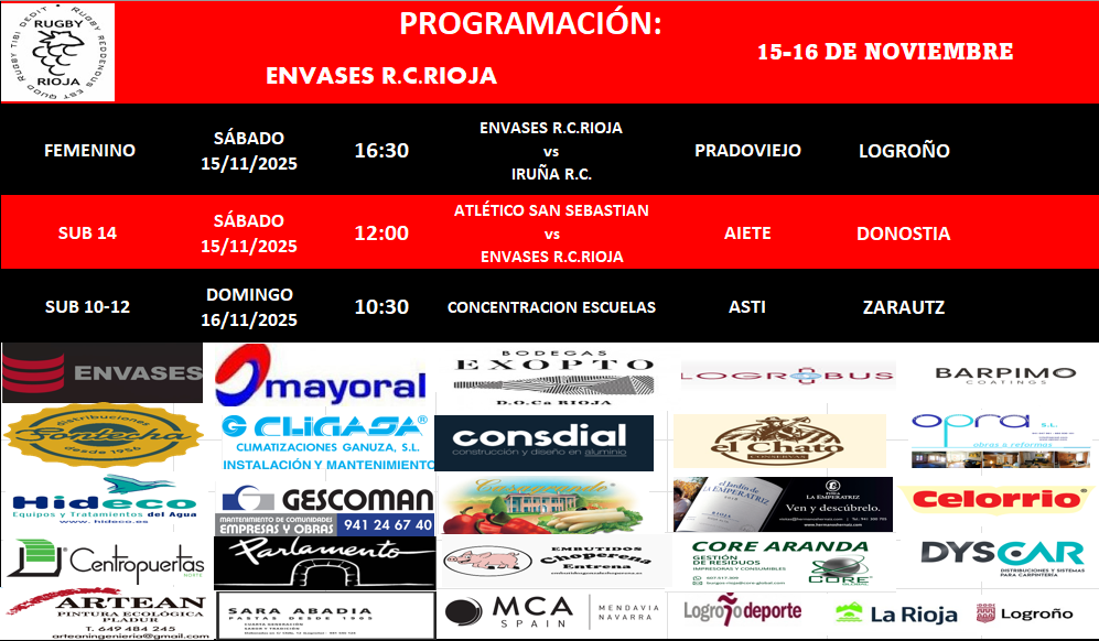 SÁBADO 15/11/2025 CAMPO: PRADOVIEJO (LOGROÑO) 16:30 H.