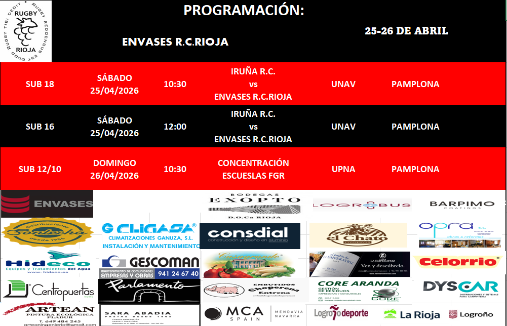 SÁBADO 11/04/2026 CAMPO: PRADOVIEJO (LOGROÑO) 14:00 H.